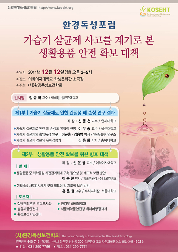 (사)환경독성보건학회 환경독성포럼 프로그램 안내