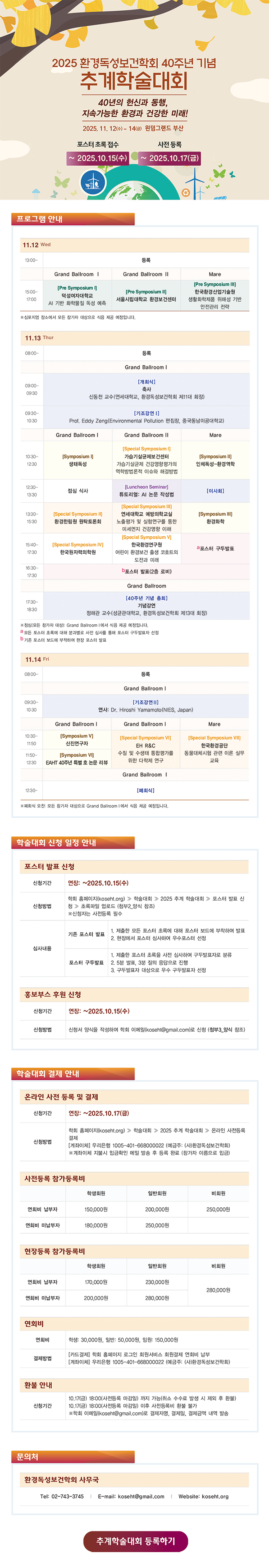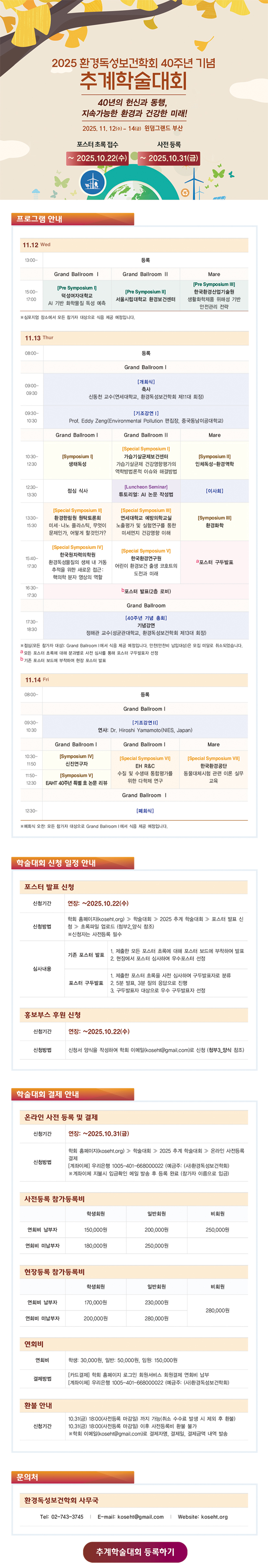 2025 환경독성보건학회 40주년 기념 추계학술대회 등록 기간 연장 및 프로그램 안내
