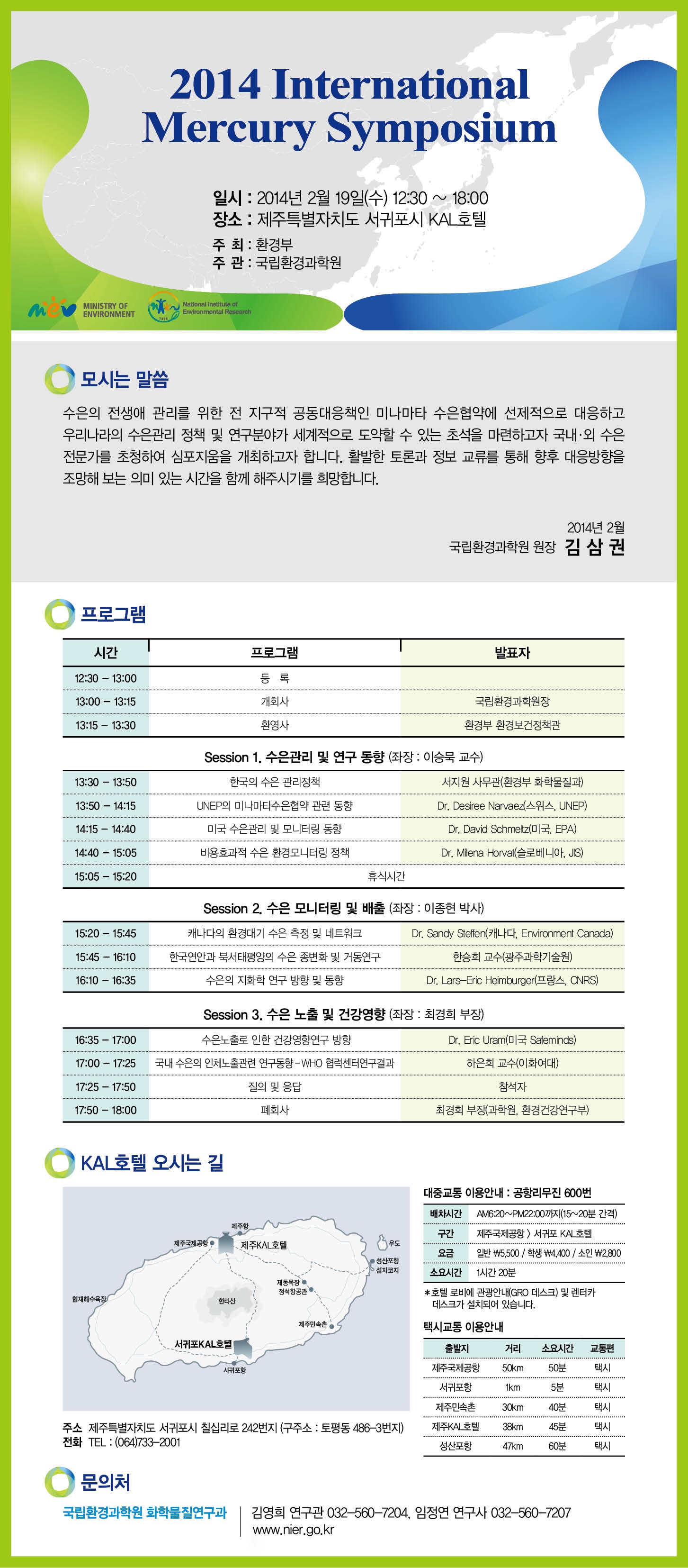 수은 관리 및 연구분야의 국제동향에 대한 정보교류와 협력방안을 논의하고자,장소 : 제주도 서귀포 칼 호텔 크리스탈룸