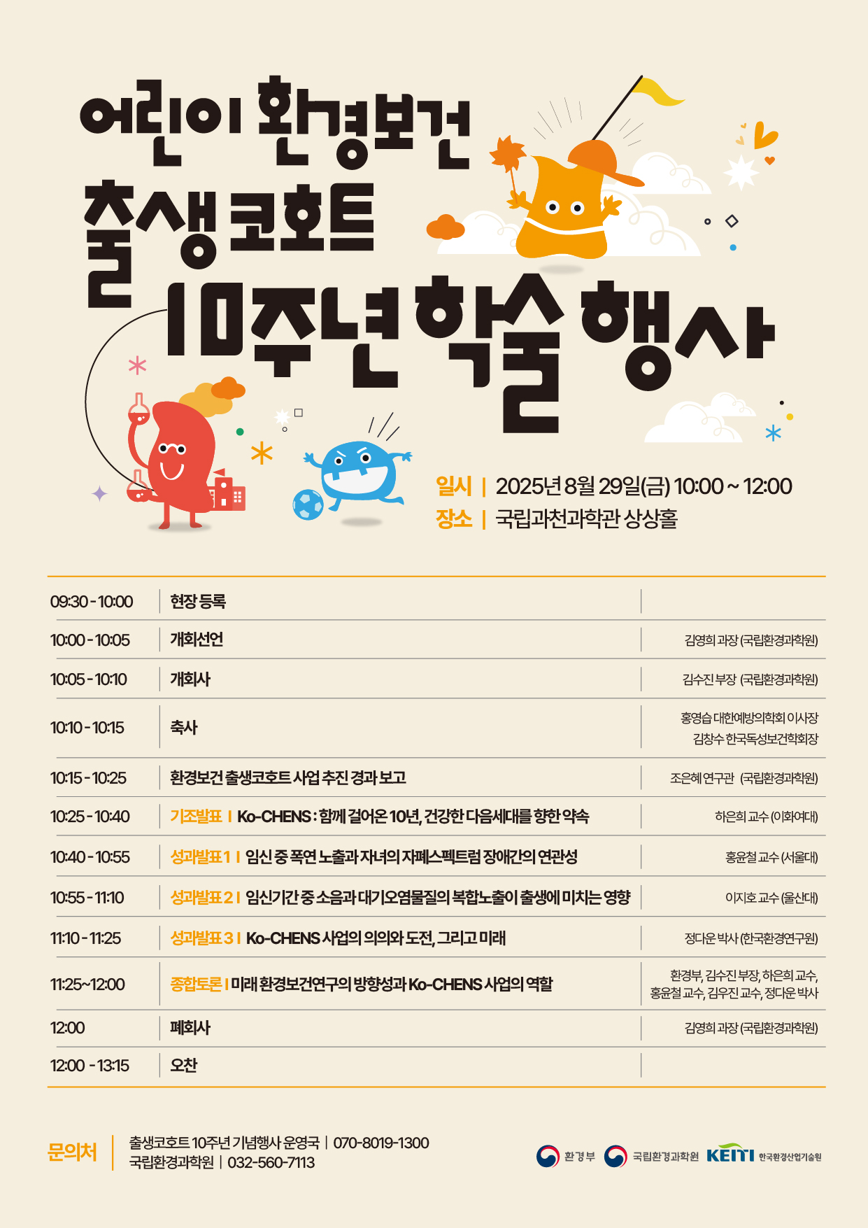 환경부와 국립환경과학원은 '어린이 환경보건 출생코호트'의 탄생 10주년을 맞이하여 다가오는 8월 29일(금) 국립과천과학관 상상홀에서 학술행사를 개최합니다.