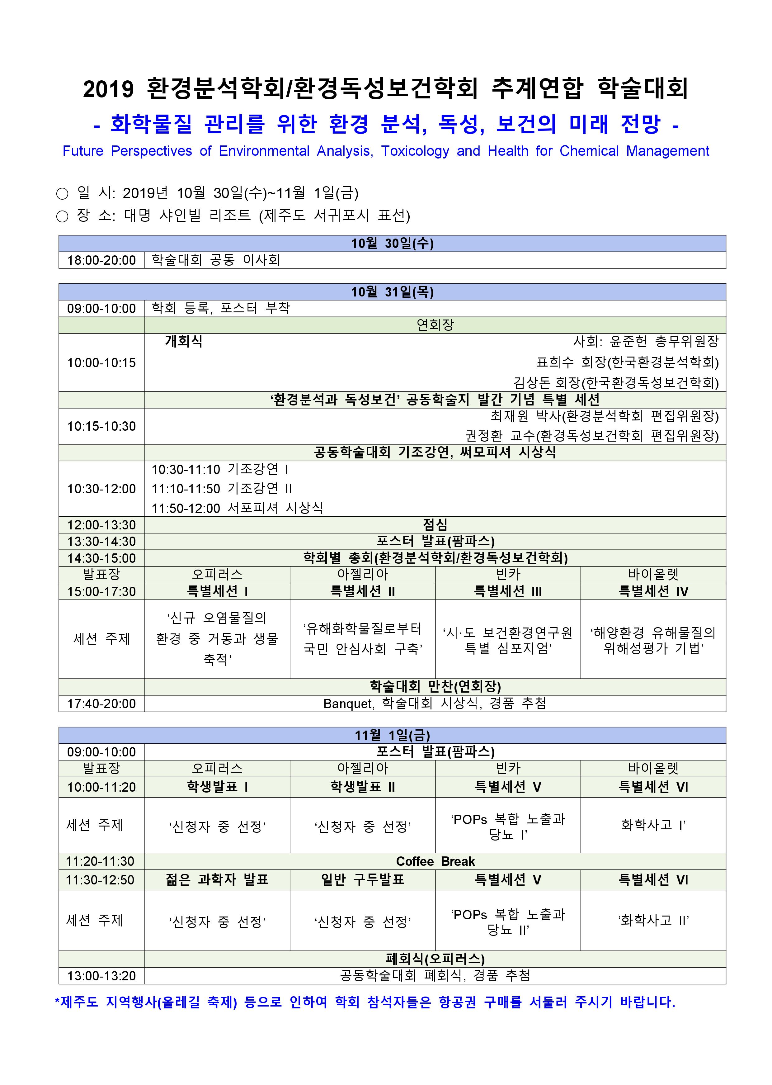 2019년도 환경독성보건학회/환경분석학회 2019년 추계학술대회가